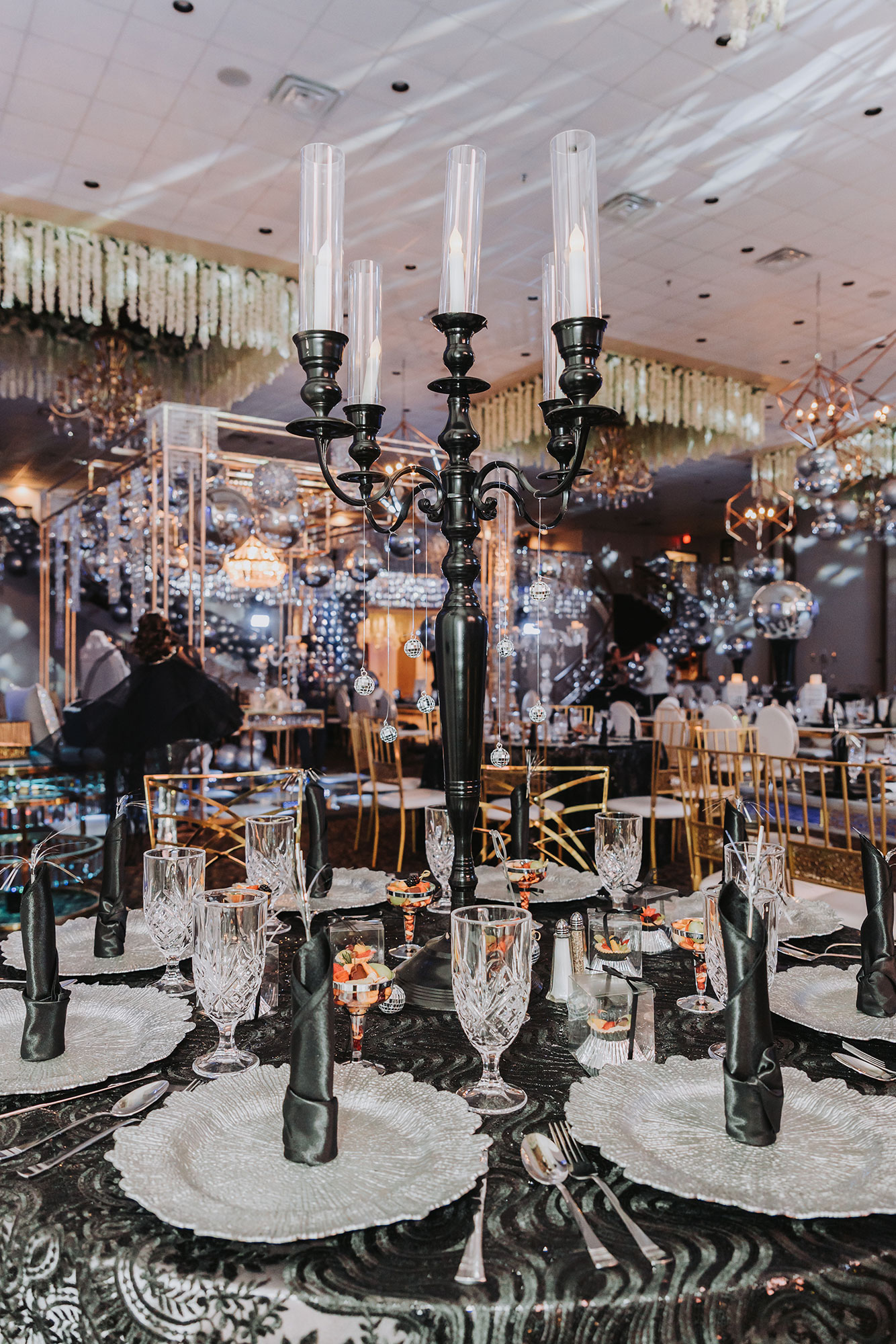 • Stunning crystal chandeliers with floral accents